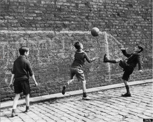 En el recreo, jugábamos al fútbol en la calle. Era de tierra y no circulaban coches por ella. Hacía sol (en “Días de radio”, Woody Allen vivía en una ciudad lluviosa, porque esa llovizna embellece el recuerdo; quizá el sol de de entonces tenga causas análogas, pero lo cierto es que en mi memoria el día era luminoso). Los capitanes (dos chicos mayores) echaban a pies (oro, plata, oro, plata, …, monta y cabe) la suerte que decidiría el orden de elección para formar los equipos, y los pequeños aceptábamos ese orden de cosas como algo natural.