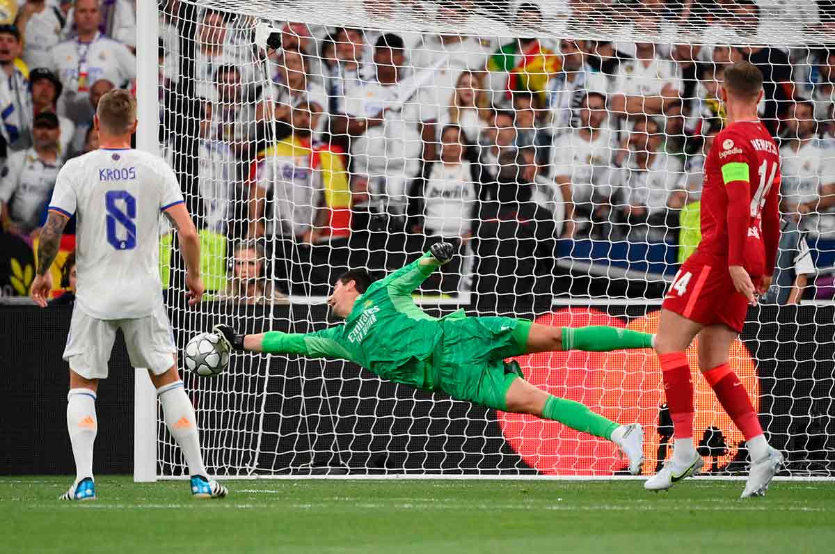 Courtois es el ejemplo más patente de que muchos grandes futbolistas tienen que vestir la camiseta blanca para alcanzar, de verdad, ese grado de excelencia que los catapulta directamente a la posteridad. Equipos grandes hay muchos, equipos grandes que ganen Copas de Europa, también, aunque no tantos, pero equipos en los que cada Copa de Europa es un desafío permanente a las leyes que rigen el Universo y que delimitan lo posible de lo imposible, sólo hay uno. No es que el Madrid sea el lado bueno de la Historia, es que es la Historia. El Madrid la escribe, los demás anotan en los márgenes, intentan emborronar la página y en ocasiones lo consiguen, pero todos trabajan sobre el mismo libro, que es propiedad del Real. El Madrid hace leyenda al segundo portero de la Unión Deportiva Levante y el Madrid le consigue un supercontrato en el PSG. El Madrid transforma a promesas de la Ligue 1 y a talentos sin cuajar del Tottenham en futbolistas generacionales, en símbolos populares, en evocaciones infinitas de todo lo luminoso y bello que puede producir el hombre si tiene la motivación adecuada, el estímulo justo y vive en el entorno correcto. Todo eso es el Madrid.