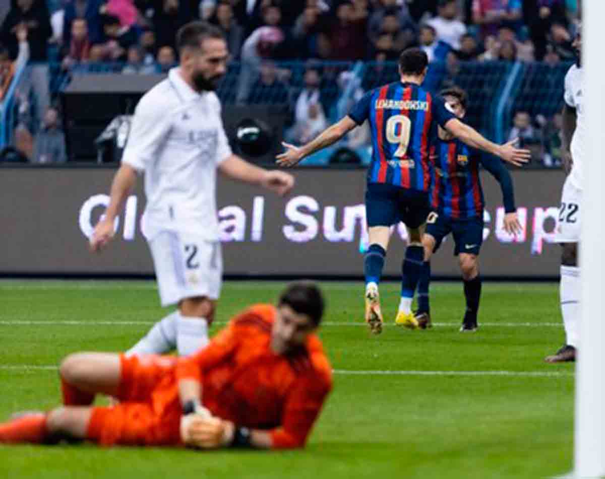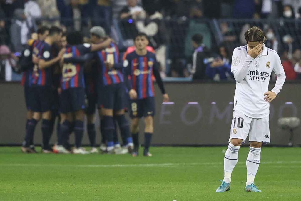 Para el Barcelona de Xavi, equipo de Europa League que sin embargo lidera el campeonato nacional de liga porque tiene más hambre, la sensación antes del partido era que la final de la Supercopa de España era algo semejante a lo que fue la final de la Copa del Rey del año 2011 para aquel Madrid de Mourinho. Esa sensación se confirmó dramáticamente al final de los noventa minutos en Riad, unos noventa minutos que agrandaron la impresión que da este Madrid de equipo cansado y sin alegría. La alegría la dan la ilusión por ganar y las ganas. El Barcelona es un equipo menor hecho con retales y descartes, un cúmulo de naderías y de promesas infladas por la opinión pública que sin embargo quería arañar la cara del macho alfa como fuera. Tenía sangre en la mirada. Una victoria sobre el Madrid era una forma de legitimarse, de darse seguridad y de creérselo. No en vano, llevaban tres años sin probar un título. Por el camino han perdido a Messi y han descendido un escalón en la cadena trófica de la élite europea.