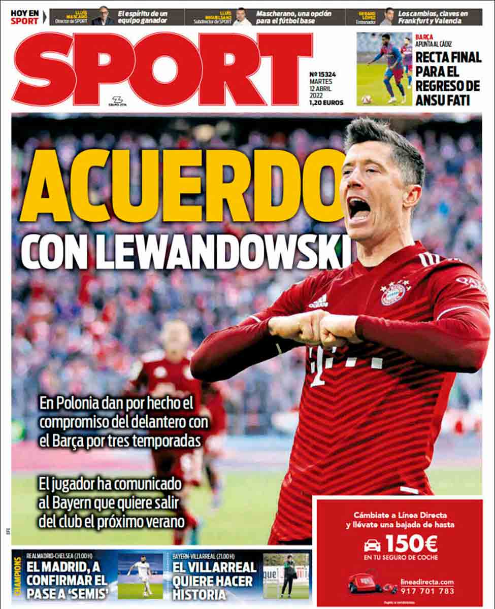 3. Ya no sorprende, pero asquea mucho, el escaso entusiasmo de la presunta prensa deportiva de Madrid (que jamás madridista) con el equipo blanco. Las portadas de hoy, sosas como un yogur de agua. Una menciona la famosa silla, pero sin el menor entusiasmo ni implicación con el equipo. Y la segunda, con un entrecomillado absurdo, patético y relañero a más no poder. Por eso, a pesar de toda esta gentuza, hoy como siempre, ¡Hala Madrid y a por la decimocuarta!