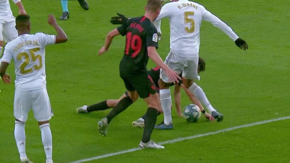 El pasado sábado se produjeron en el Bernabéu dos jugadas polémicas en las que intervino el VAR, en una primera favoreciendo al Madrid al anular el gol de De Jong y en otra segunda a favor del Sevilla cuando el árbitro no anuló un gol también de De Jong por manos de Munir.