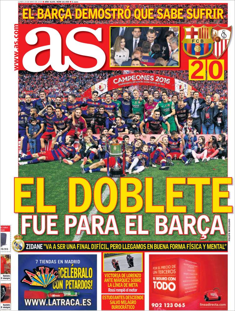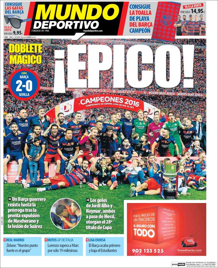 El matiz viene en pequeños detalles, característicos del cariz de cada una de las publicaciones. Marca lo enfoca al vínculo Barça-Roja, encarnado en Iniesta. Mundo Deportivo se pone esdrújulo ("mágico", "épico"), al tiempo que habla de un Barça "guerrero", adjetivo que hasta hace cinco minutos y medio era casi despectivo entre los del rinconcito. As pone una gran foto de todo el Barça celebrando, lo que per se constituye quizá una semiótica celebratoria y no ya meramente informativa. El Único Diario que no Trajo a Portada el Atentado contra una Peña Madridista en Irak, por su parte, nos quiere convencer de que el Barça estuvo épico sin hacer mención a los groseros errores de Emery, que rebajaron cuarto y mitad de condición legendaria a la victoria de los estelados (si el propio presidente de la Generalitat llama a ésta "la victoria de las esteladas" y nadie del Barça le reconviene, no vamos a ser nosotros más papistas que el Papa negando a Messi y sus chicos tal sobrenombre).