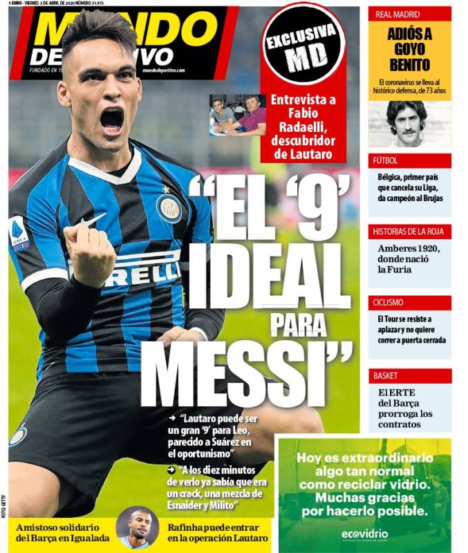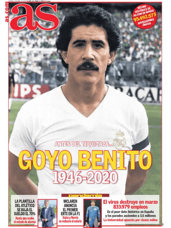 La portada buena de hoy es la de As. Una portada sencilla y sentida para despedir a un mito del madridismo, alguien que encarna como pocos el espíritu indomable del madridismo eterno: Goyo Benito. Leed los textos de homenaje de Athos Dumas y John Falstaff.