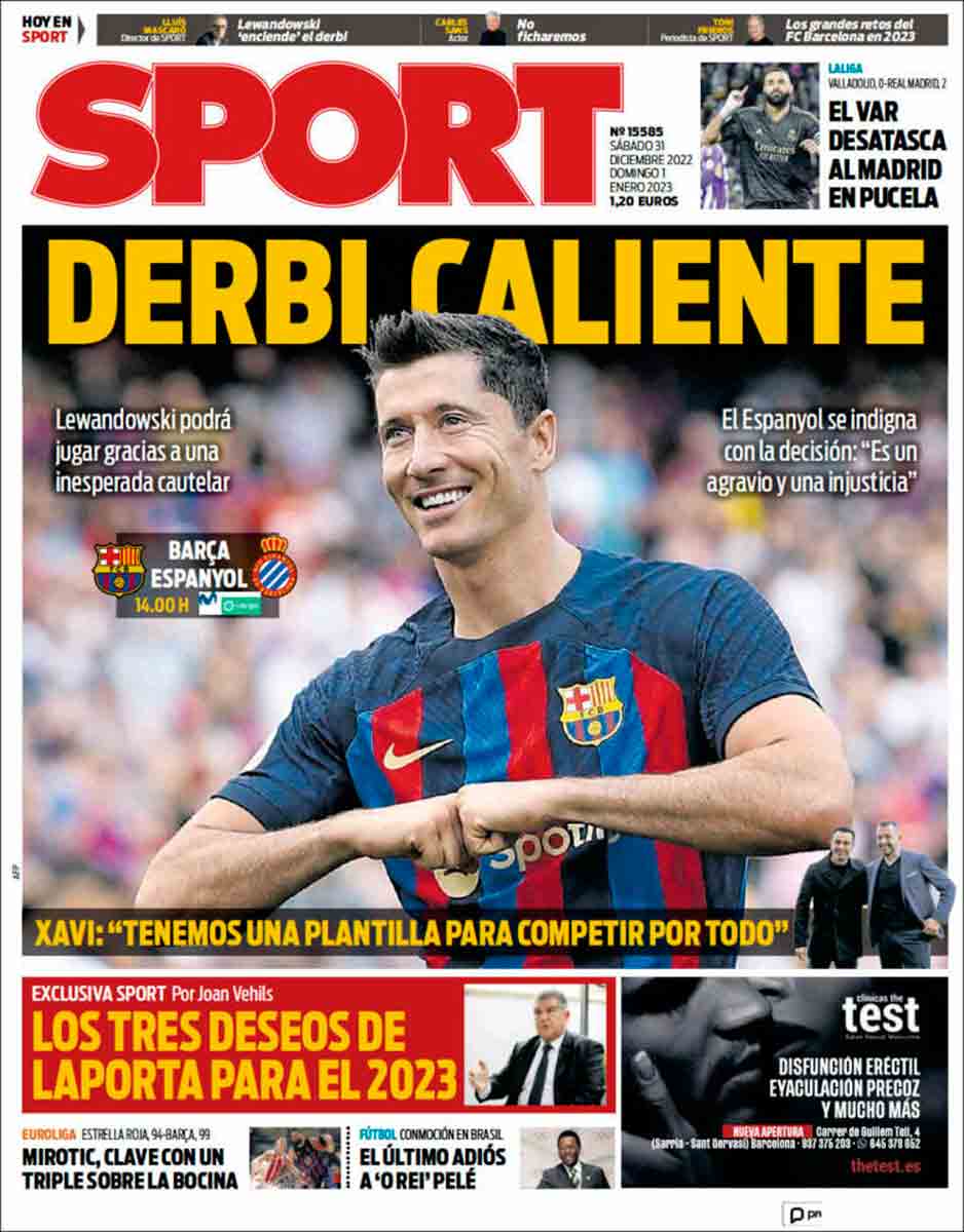 En un recuadro pequeño de la portada de As leemos que “la cautelar a Lewandowski enciende el derbi”, pero no encontramos un adjetivo que defina lo que esta condonación de la sanción supone: una puñetera vergüenza. Un escándalo mayúsculo, como Jesús Bengoechea explicó de manera adecuada ayer mismo. Nah, la prensa madridista tiene que disimular y por eso no vemos un juicio de valor sobre tamaña vergüenza, una más que unir al cierre nunca ejecutado del Camp Nou, la sanción nunca cumplida por no presentarse a un partido de Copa, el partido de Pamplona al que llegaron tarde por el capricho de San Pep, los dos años sin penaltis en contra pese a jugar con Mascherano y Piqué en sus filas, las expulsiones perdonadas a Luis Suárez por agresiones e insultos, las dos amarillas de Busquets que no supusieron una roja, los insultos racistas a Vinícius, tanto del propio Busi, como de un espectador al que fue imposible reconocer, todas las tropelías que ya Athos Dumas representó en un rosco de Pasapalabra o los continuados atracos en Clásicos que dieron lugar a otro rosco completo de Barney.
