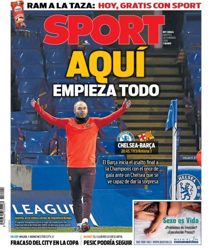 1- Anoche, el Manchester City de Pep Guardiola cayó eliminado en FA Cup ante un tercera división. Hoy ya no es el City de Guardiola, sino el City a secas. O el City del jeque. Algo así. En 'Sport' se olvidan de su entrenador favorito, al que sólo citan cuando lo hace bien, no cuando se pega un batacazo sonado como el de anoche. 83% de posesión y cero goles. Imposible gestionar peor un escenario tan favorable. ¿No decían que el balón era lo más importante? Pues el Wigan no lo tuvo y pasó de ronda.