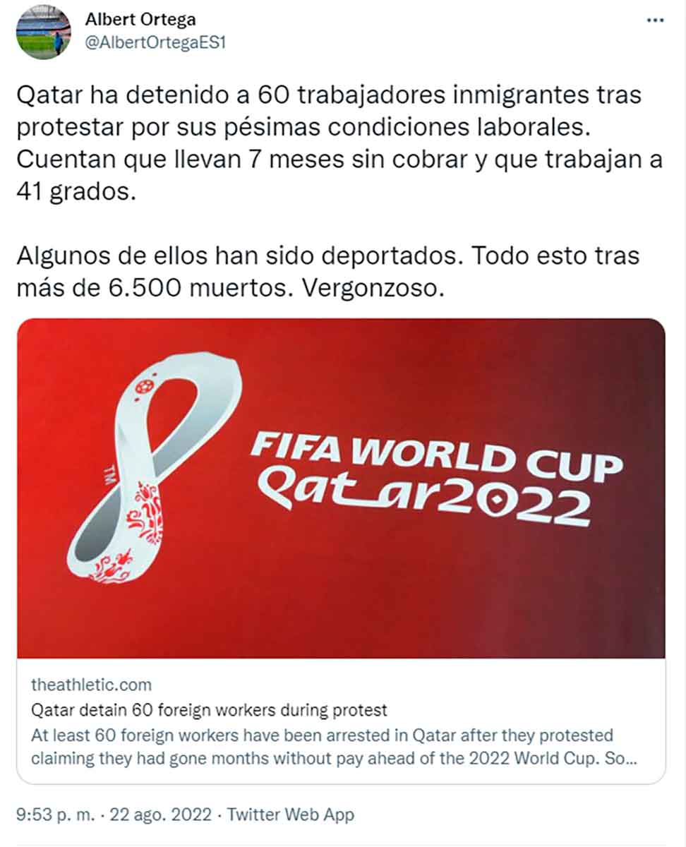 Donde no deja de haber miseria moral es en todo lo que rodea al Mundial de Catar. Suma y sigue.