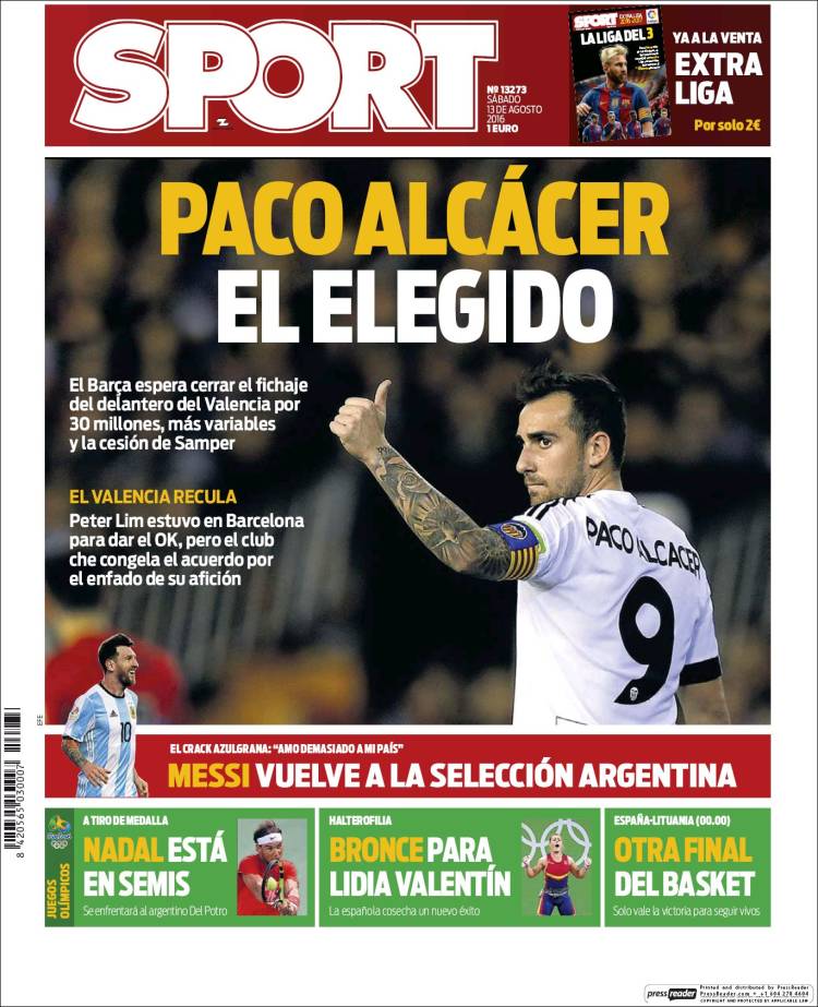 Y para muestra, un botón. O dos botones, que para eso tanto monta, monta tanto Isabel Deportivo como Fernando Sport. Tras una lista que ríanse ustedes de la telefónica, ahora "el elegido" para la delantera culé es Paco Alcácer. Sí, también del Valencia, como el ya fichado André Gomes, tras unas negociaciones durísimas, costosísimas, penosísimas y tal. Si también llegara Alcácer al Camp Nou, proponemos que acaben besándose Valencia y Barcelona mientras hacen vudú a un muñeco con camiseta del Madrid y santas pascuas. Amics per sempre y no se hable más, que no somos nadie para censurar ningún amor, y menos de verano.
