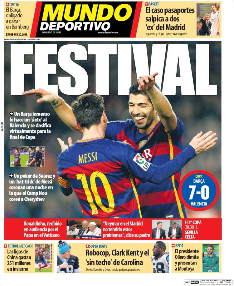 Pero antes de hacer juicios precipitados, contemplemos la posibilidad de que en el partido que ayer disputaron (es un decir) el Barcelona y el Valencia solo se sacara una foto, esa que Sport y Mundo Deportivo no tienen más remedio que compartir en sus portadas gemelas. Tal vez hubo huelga de reporteros gráficos ayer en el Camp Nou, acaso la misma huelga que parecieron secundar los jugadores del Valencia, aunque solo fuera por solidaridad. Una sola foto. ¿Se imaginan? ¿Quién la habrá sacado? ¿Qué fotógrafo ha sido el garante de estos servicios mínimos? ¿Se habrá hecho la elección por sorteo, o dicho reportero se presentó voluntario para hacer ese único clic por estar en contra de los motivos esgrimidos por los huelguistas? ¿Esquirol o profesional responsable? Quién sabe, pero hay un reportaje ahí, de esos confidenciales o de esas exclusivas que suelen publicar estos mismos periódicos deportivos catalanes que estamos glosando. Ríanse ustedes de Spotlight, Pulitzer, Kapuscinski y Lidia Lozano.