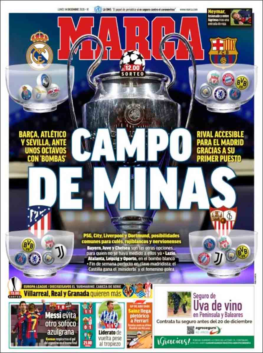 El Barça, el Atleti y el Sevilla, por su parte, se enfrentan en cambio a un sorteo temible donde les pueden corresponder verdaderos cocos. 2 de cada 8 personas consultadas por La Galerna apuestan por un cruce Bayern-Barcelona que permita a los bávaros desquitarse del sinsabor de no haber llegado a los dos dígitos en el marcador de la temporada pasada, aunque como veréis la prensa afín prefiere que les toque el Dortmund, presunta perita en dulce comandada por un delantero chaparrito y timorato que apenas mete goles y ante el cual tanto Lenglet como el otro central del Barça (¿cómo se llama?) tendrán sin duda dos noches de lo más plácidas. Al Sevilla le vemos, por ejemplo, contra el PSG, y al Atleti da un poco igual porque Simeone lo va a hacer todo a la perfección, lo mismo ante Mo Salah que ante los chicos de Pep. No hay nada que Simeone haga mal, es verdad revelada y está muy feo ponerla en cuestión.