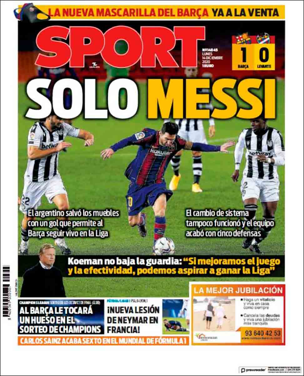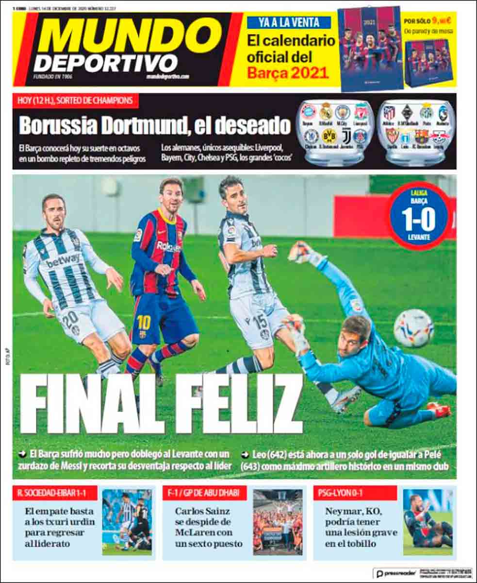 Ya veis cómo, en su faldón superior, Mundo Deportivo afirma sin remilgos que el rival deseado para los de Koeman es el Borussia Dortmund. Como los culés se empleen ante Haaland y compañía con la misma soltura, ritmo y diligencia que imprimieron ayer a su juego contra el Levante, el picadillo que pueden hacer los alemanes con esta desgracia de equipo que se gastan ahora los azulgrana puede ser de época. Es un Barça que gira en torno a un Messi al que da pena ver incluso a los propios madridistas, y con independencia de que aún conserve el olfato para lograr ante los levantinos el gol del triunfo en las postrimerías del partido. Este Barça juega rematadamente mal, pero por otro lado ¿con qué cara le puedes exigir ni abnegación ni brillantez a un colectivo que no cobra?