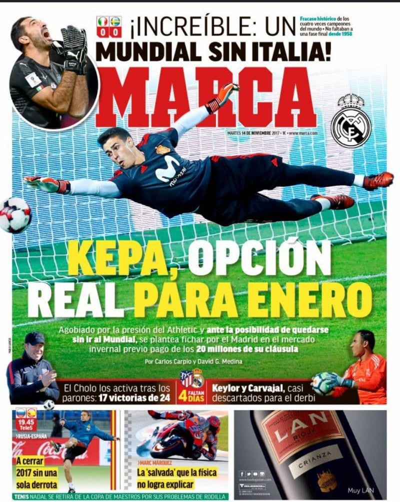 Por su parte, tanto El Mundo Deportivo como el Hernia Chronicle, no sabemos si a falta de mejores argumentos o de ganas de trabajar, recurren al capítulo primero del manual de subsistencia del periodista deportivo en días de calma chicha: rellenar el vacío con la nada hablando de posibles fichajes. Dos clásicos, a saber, Kepa para el Real Madrid y Coutinho, ese viejo sueño húmedo, para el Barcelona. Sí, amigos, compartimos vuestra pereza infinita. El Mundo Deportivo, además, nos informa de que Lopetegui no se fía de los rusos, lo que no deja de hermanarle con Trump, y nos regala el siguiente y misterioso entrecomillado: "España es un buen equipo". Como el diario no se molesta en atribuir el entrecomillado a nadie, y una vez descartado que se trate de Oriol Junqueras tratando de hacer méritos para salir de la trena, hemos de suponer que tan enjundiosas declaraciones han salido de la boca del culé que desconfiaba de los rusos. Nos alivia, si nuestra suposición es correcta, que al seleccionador español le parezca que su selección no es un truño infumable. Al loro, que no estamos tan mal.