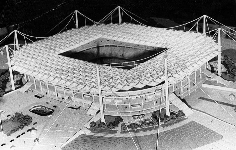 En la Asamblea General de Socios del 8 de septiembre, los asistentes en pleno aclamaron el último milagro con el que el gran hacedor, don Santiago, pretendía asegurar el futuro de la entidad. El nuevo estadio fue diseñado por Félix Candela, célebre arquitecto español distinguido entonces por ser el responsable del Palacio de los Deportes que acogió los JJOO de México en 1968. Candela hizo fortuna en México con sus estructuras laminares, rasgo característico de su estilo arquitectónico. Había algo parecido a eso en la maqueta que el club exhibió en el Círculo de Bellas Artes, una vez presentado el proyecto: un vanguardista techo flotante sostenido por pilares y cables, que a simple vista recuerda a la factura de estadios modernos como el Stade de France de París, el Emirates de Londres o el Amsterdam Arena.