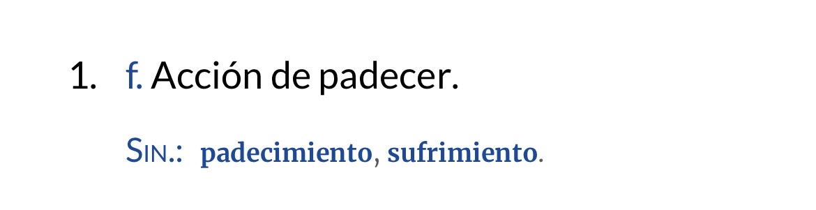 Hay, claro, otra acepción casi contradictoria con esta última. pero directamente derivada de la concerniente a la Semana Santa. La pasión como sufrimiento. Y esa (ay) es precisamente la acepción que en estos días sentimos vivamente en nuestras carnes. El diccionario parece haber coordinado con nuestro corazón, en estas fechas aciagas, que aparezca la primera para la RAE.