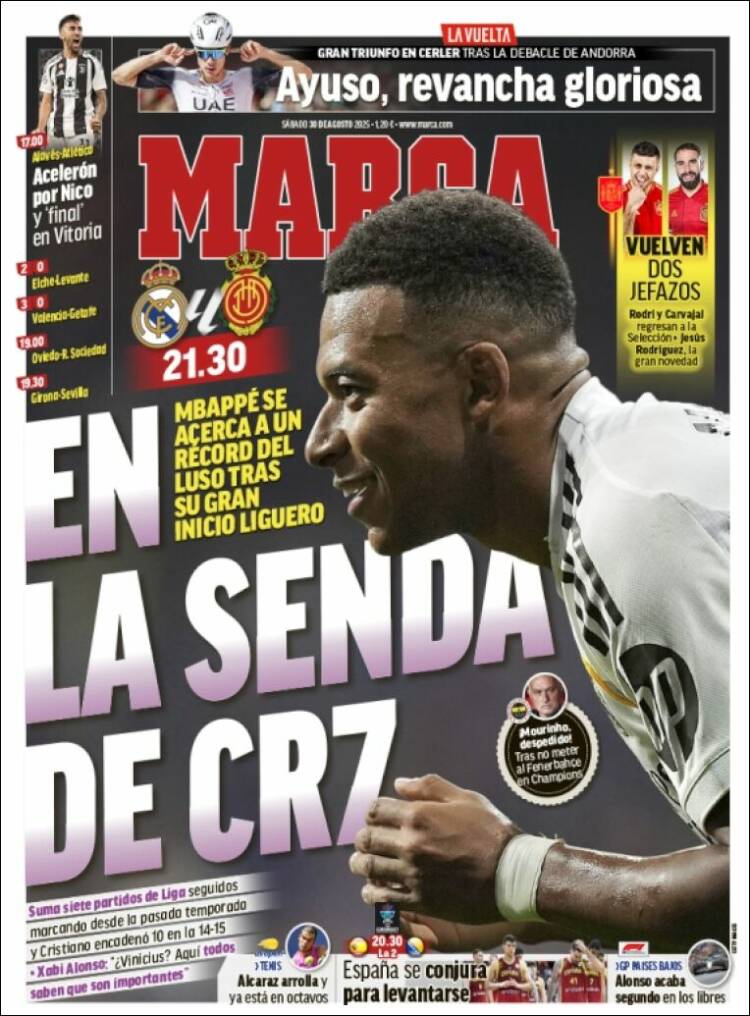 También hay espacio en la primera plana marquista para la convocatoria de Rodri y Carvajal con España.