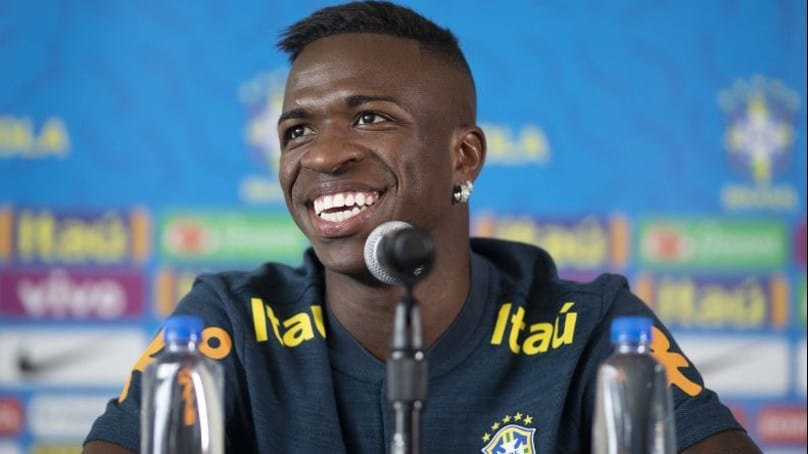Del mismo modo, se le inquirió en torno a su ubicación en la banda derecha. Y otra vez, Vinicius se adjudicó parte de la responsabilidad de dicha posición, al declarar que él mismo animaba a Zidane a situarlo en esa demarcación. Digo solo en parte porque, como es evidente, son Hazard en el Real Madrid y Neymar en la selección brasileña los que le “han invitado” a cambiar de banda. No obstante, el chico ha vuelto a asumir el obstáculo como un hándicap. Sabe que en estos momentos le cuesta jugar ahí, motivo por el cual se muestra todavía perdido, en plena fase de adaptación, pero declaró su voluntad de adaptarse a la nueva posición, reconociendo que llevaría su tiempo. Y mientras lo contaba mostró la sonrisa que siempre le ha caracterizado, dejando claro que el juego aún no había terminado.