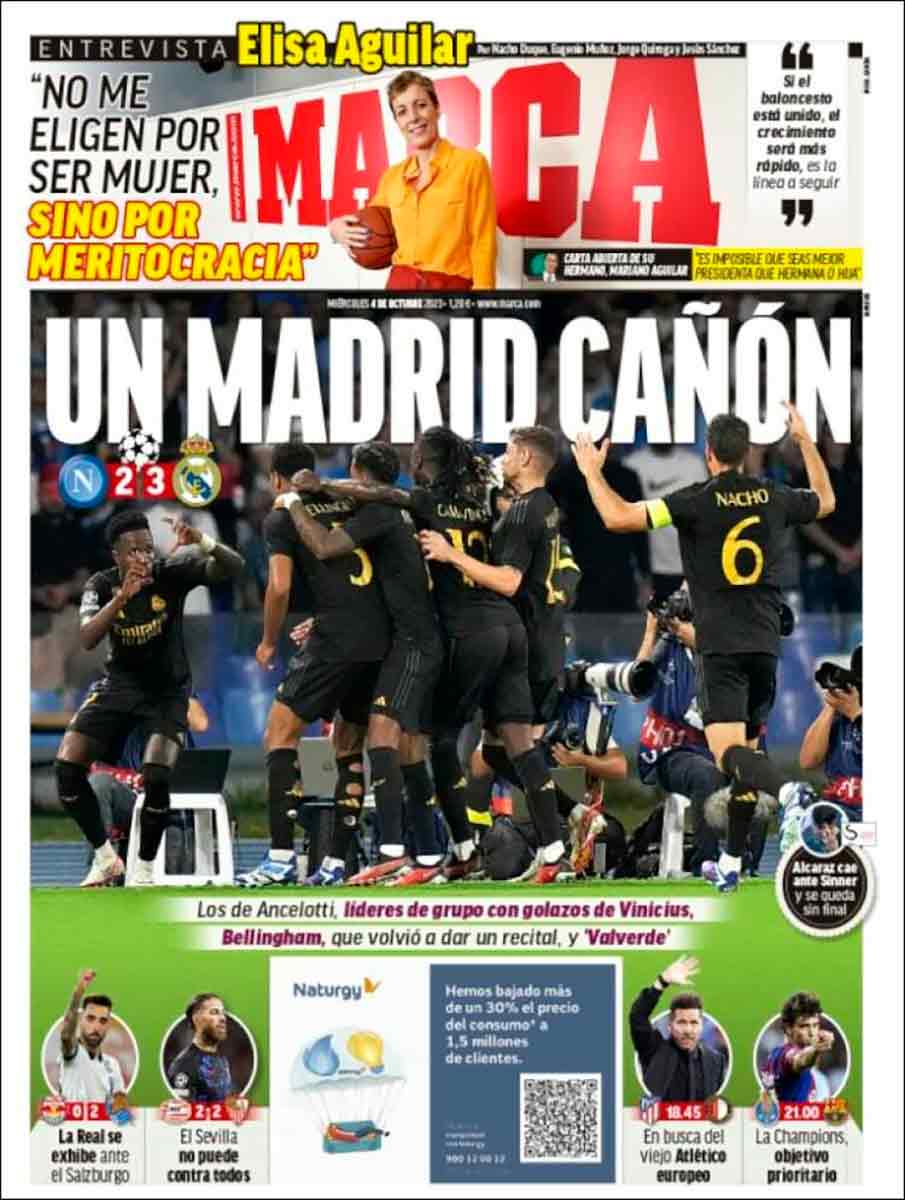 Buenos días, amigos, y hoy sí que son buenos de verdad. Da gusto abrir la persiana a un mundo en el cual el Madrid ha ganado en Nápoles, el encuentro a priori más comprometido de cuantos ha deparado su grupo de Champions, y lo ha hecho además con brillantez futbolística y capacidad de respuesta ante la adversidad. Los de Ancelotti derrocharon en el estadio que lleva el nombre de Diego la virtudes quintaesenciales, vintage, que le han deparado gloria y fama. Leed la crónica de Ramón Álvarez de Mon y el comentario casi blasfemo de Jesús Bengoechea sobre Inglaterra y Maradona.