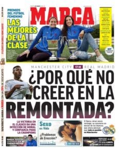 Marca sueña con la remontada y nos parece bien. Pero no porque el Madrid ganara el Clásico. El Madrid no necesita ganar para seguir ganando, y sabe distinguir perfectamente entre competiciones. Las opciones de remontada en Manchester (pero no adelantemos acontecimientos) habrían sido las mismas de haberse perdido el choque contra los azulgrana, si bien el chute de autoestima nunca está de más. Nosotros también soñamos con la remontada a los de Pep, claro que sí, pero cada cosa a su tiempo.