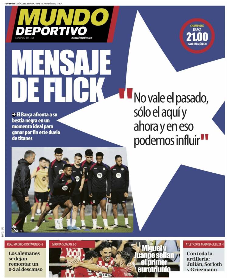 Os dejamos con la prensa cataculé, que hoy se anticipa al partido de Champions contra el Bayern de los de Flick. A destacar el recuadrito que Mundo Deportivo dedica a lo de ayer en Chamartín: “Los alemanes se dejan remontar un 0-2 al descanso”.