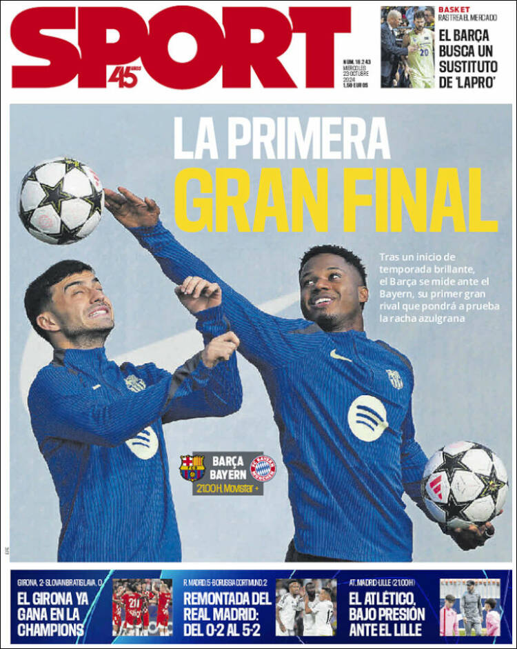 Me ha gustado la portada del Sport. En el recuadro superior derecha nos cuenta que el Barca busca el sustituto de Lapró.... Lo que de verdad lleva buscando años es el sustituto de Negreira