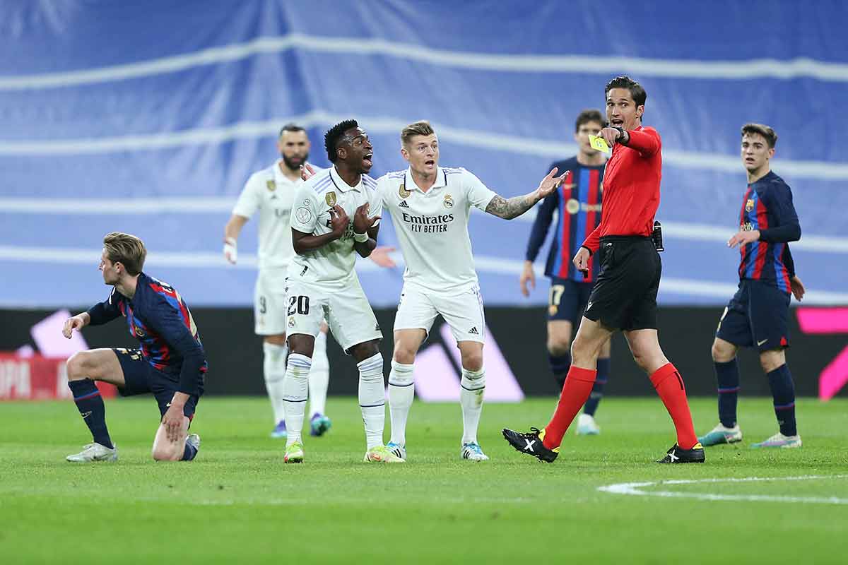 El relato construido con intereses espurios es que Vinicius es sinónimo de provocación y en esa ecuación todo vale para despejar el valor de su juego. Eliminado o desquiciado uno de los factores desequilibrantes todo es más fácil. El papel de emperador caprichoso se reserva a ese árbitro altivo que, guiñándole a los focos, dice yo me sumo al aquelarre: tarjeta amarilla para el brasileño y algarabía del respetable anti. El mensaje de barra libre ha calado y no hay hombre de negro dispuesto a ser solución y no problema. No renta.