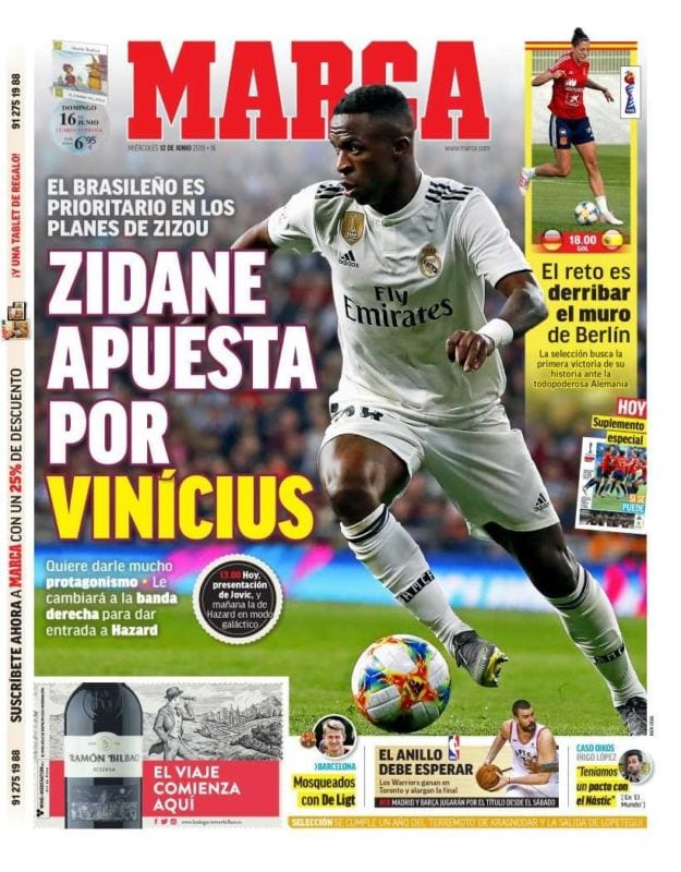 Hola a todos. Hoy es uno de esos días en los que uno desea que 'Marca' dé con la tecla. Lo entenderéis en cuanto veáis la portada del diario madrileño. Sale Vinicius en ella. Y lo hace para apuntarse al nuevo proyecto de Zinedine Zidane. Vinicius no fue una bonita casualidad. Vino para quedarse. Y Zidane, al parecer, quiere que se quede.