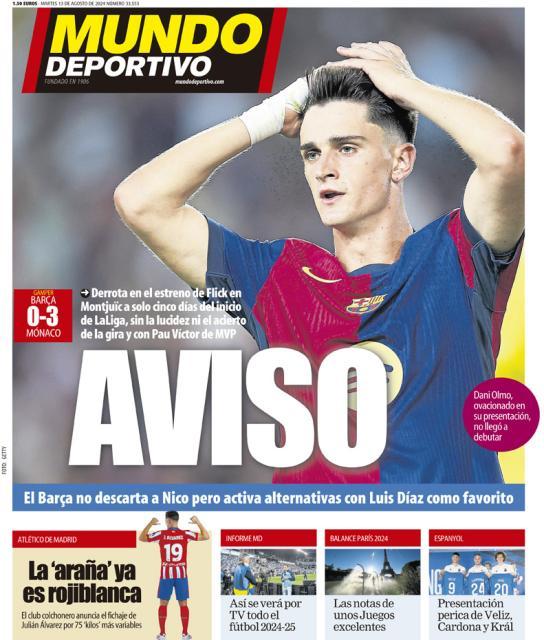 Vaya por Dios. En su tradicional torneo de verano, el Joan Gámper, el flamante nuevo Barça de Hansi Flick tuvo que palmar con estrépito ante el Mónaco. Tampoco hay que preocuparse mucho. De hecho, Mundo Deportivo no parece estar muy preocupado.  Al fin y el cabo, se trató tan sólo de que faltaron "la lucidez y el acierto de la gira" y Pau Víctor fue MVP.