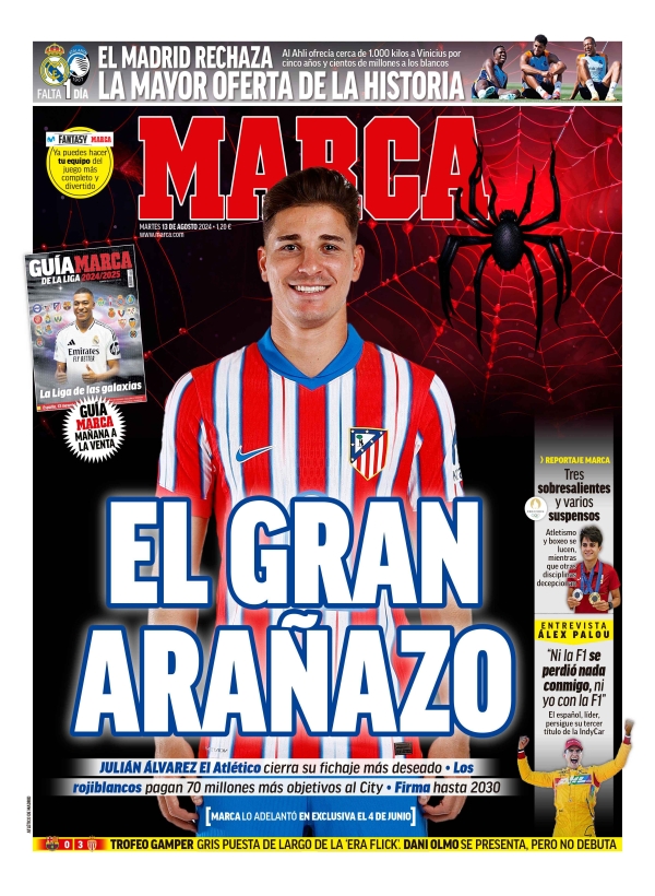 Os dejamos con el diario Marca y su arrobo ante los (excelentes) fichajes del Atleti. Pero ya lo advertimos: el Atleti puede (es un decir) fichar al mismísimo Vinícius, que si no cambia su esencia perdedora, la que impregna al club sociológica, mediática e institucionalmente, no hará jamás algo grande.