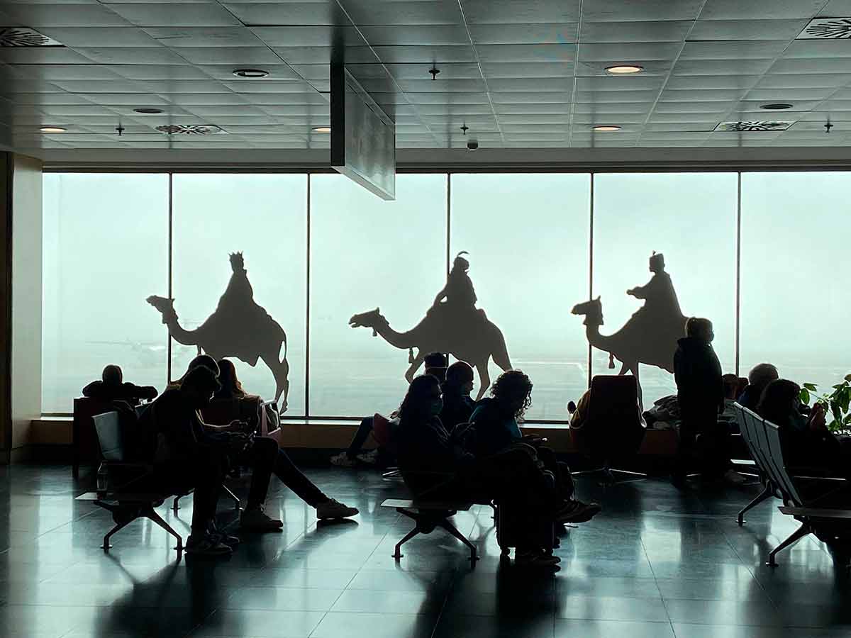 La megafonía del aeropuerto anunciando el embarque inminente del vuelo a Jeddah. “All the passengers please blablablá…”, le interrumpió la sonrisa y le blanqueó los nudillos al apretar el vaso de cerveza con las manos. Se irguió sobre el asiento, mirando a su alrededor.
