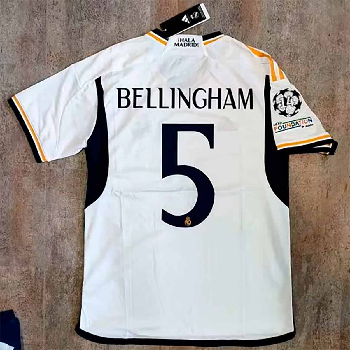 Con mimo, dejó la bolsa en el suelo y de ella extrajo una camiseta del Real Madrid de talla infantil con el número 5 y su correspondiente “Bellingham” serigrafiado. La sostuvo extático frente a las miradas divertidas de sus compañeros.