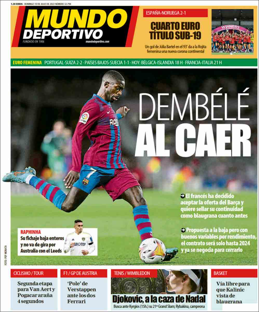 Por lo demás, la prensa cataculé destaca la renovación de Dembélé, que sería como si el Madrid hubiese renovado a Bale, aproximadamente, con la diferencia de que Bale tiene un palmarés infinitamente superior al del francés que se duerme en los aeropuertos y se casa por sorpresa en Marruecos. Toda la suerte al bueno de Ousmane, su renovación no nos inquieta más de lo estrictamente necesario.