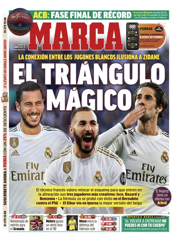Aunque bueno, hoy no nos podemos quejar. “El triángulo mágico” de Marca no sólo es motivador sino sicalíptico. Uno se acuerda del cruzado mágico y siente como un temblor, unos nervios adolescentes con el cierre del sostén; y en As miren cómo están, peor todavía, nada más y nada menos que a 200 con Zidane. Lo entendemos todo. Tras semanas y semanas, meses, de abstinencia hoy están que se suben por las portadas.