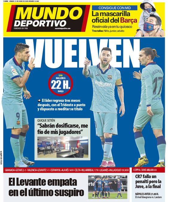 Buenos días. “Esta noche juega el Barsa y mañana el Madrid, dame la pluma Rubiales que tenemos que escribir, ande, ande, ande, ande Javier Tebas, ande, ande, ande que es la Liga buena...”. Hala (Madrid), ya hemos hecho un futbolcico, que es a la Liga lo que los villancicos a la Navidad. Porque no es Navidad, pero lo parece en los periódicos cataculés. El Barsa vuelve a jugar, vuelve, y hay mucho ahí de anuncio de turrón, donde todo es emocionante. Pero hay algunas expresiones que no nos dejan tranquilos del todo. “El Barsa saldrá con el once de gala”, “El tridente a punto”, “El equipo sabrá dosificarse”, dice Setién, “Messi vuelve con toda la ambición del mundo”. No sabemos qué pasa. Parecen las frases de un libro titulado: “El poder está en ti”. En realidad, nosotros siempre hemos visto a Sport y a Mundo Deportivo, más que como periódicos deportivos, como periódicos de autoayuda. Si un culé está triste siempre puede recurrir a sus diarios, refugiarse en ellos e incluso subrayar las líneas más enriquecedoras como, por ejemplo, las que les acabamos de presentar.
