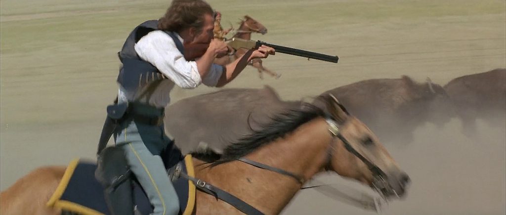 Mi escena predilecta, sin embargo, se produce en los primeros momentos de la película. Se trata de la catártica cabalgada a pecho descubierto de Dunbar frente a los confederados, brazos abiertos en espera del consolador abrazo de la muerte. Que una tentativa de suicidio acabe culminando en una motivación guerrera para sus compañeros y en una victoria insospechada es una genialidad que subraya el impredecible componente azaroso de la realidad. Alguien dirá que el episodio se podría haber equiparado más bien a uno de esos arrebatos conmovedores que finalizan en remontada, tan propios del Bernabéu, y tendrá razón. Aunque estaremos de acuerdo en que el hecho de que el premio a una heroicidad consista en un retiro a un fuerte desierto y perdido en la frontera constituye un rasgo perfecto de puro atleticismo.
