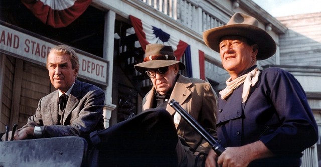 Creo que fue Peter Bogdanovich quien dijo esta cinta marcaba el fin del wéstern. Su carácter crepuscular no solo no le impide, a mi juicio, erigirse como la mejor de todo el género, sino que dicha condición incluso facilita el alcance de ese estatus. El paralelismo de algunos de sus personajes con varias de las distintas tribus que componen la afición blanca permite multitud de interpretaciones. Véanse algunos ejemplos. James Stewart es el abogado Ransom Stoddard, símbolo del hombre moderno, sensato, templado, culto y demócrata que llega desde la ciudad del Este al pueblo para traer la civilización. Creyente firme en la ley y el orden, representa a esa parte idealista del madridismo convencida de que la victoria y la corrección son valores tan complementarios como inseparables. Resulta conmovedor su denodado esfuerzo alfabetizador con los habitantes de Shinbone. Por otro lado, John Wayne aparece como Tom Doniphon, alguien escasamente refinado que, desde su buen corazón y su nobleza, está acostumbrado a enfrentarse a los problemas de otra manera, menos preocupada por las formas: criarse en un ambiente brutal forja temperamentos diferentes, más propios de Sergio Ramos que de Butragueño.