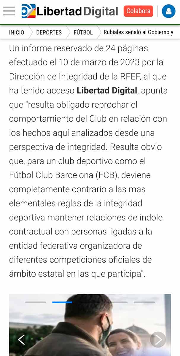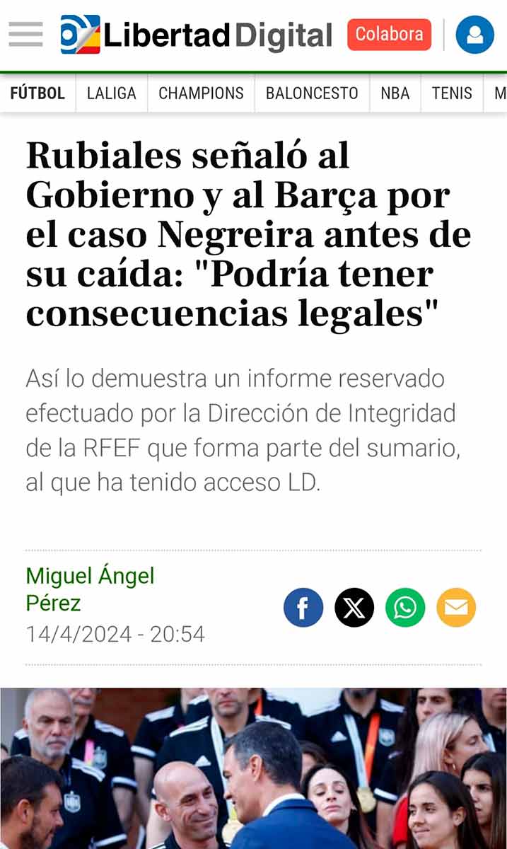El otro protagonista del día, aunque no salga en las portadas porque ya sabemos que los medios deportivos están más en guardar el detritus bajo la alfombra que en otra cosa, es ni más ni menos que Luis Rubiales. Fijaos en lo que publica Libertad Digital.