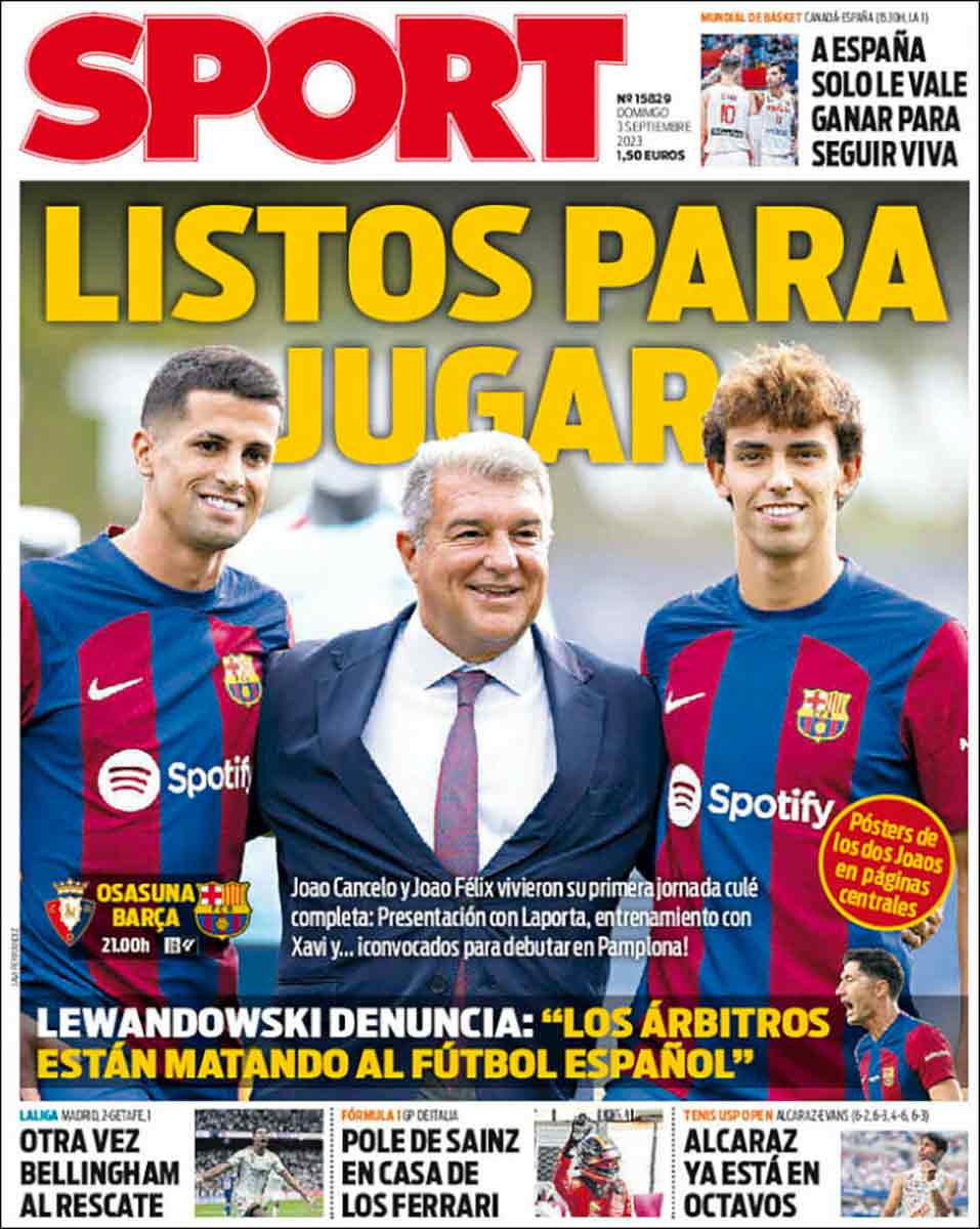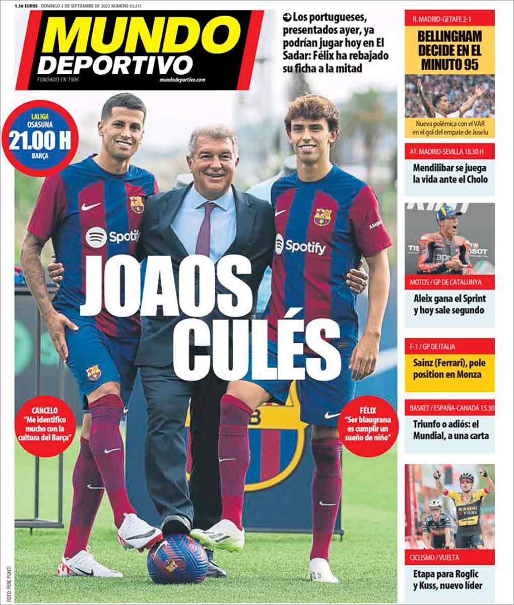 Los diarios del Barça se centran en el nuevo trío de Laporta, esta vez con sus dos nuevas contrataciones: Cancelo y Joao Félix.