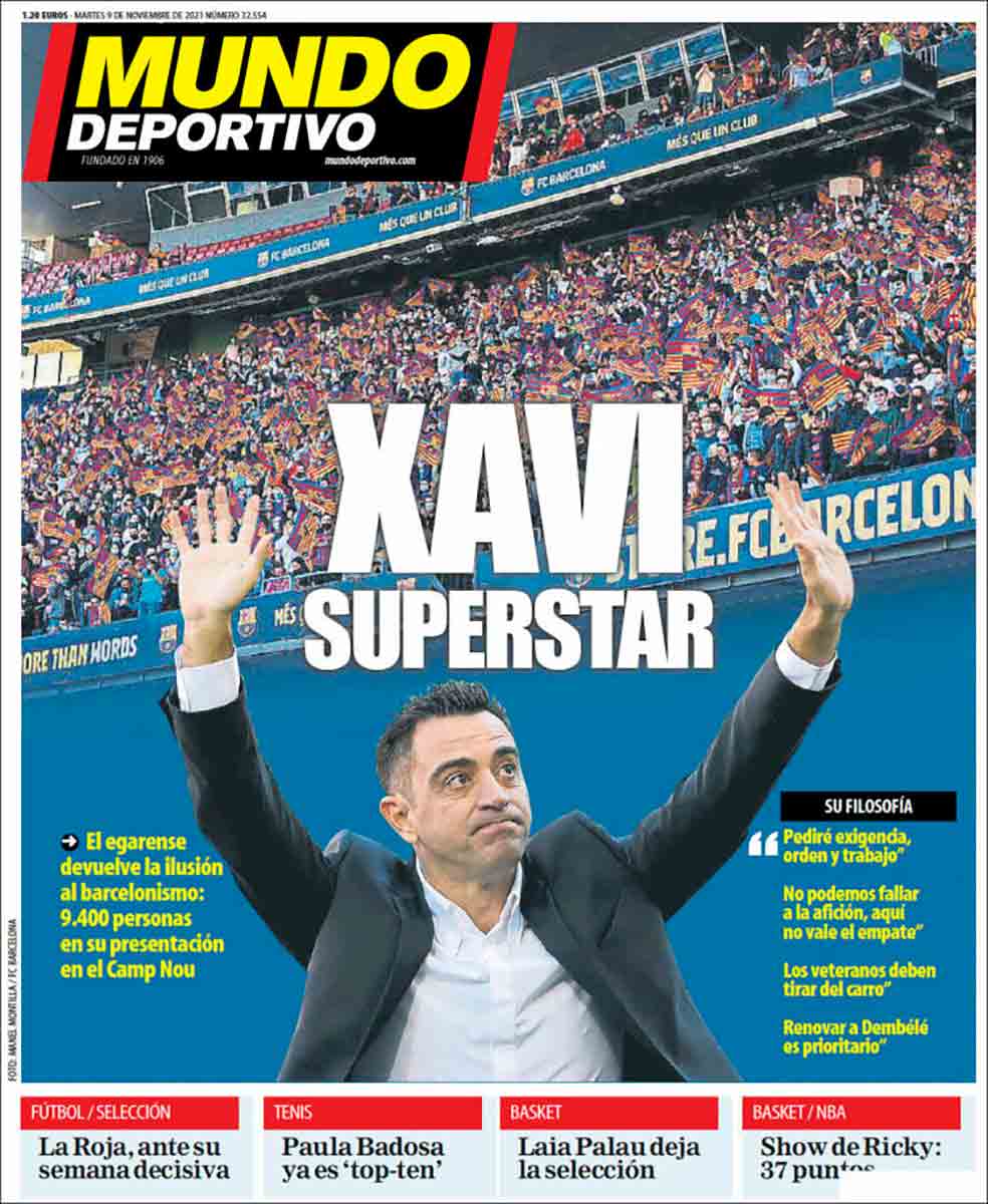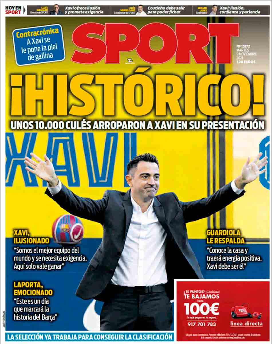 Humildad, bien. Vamos a recordar, por ejemplo, el día de su presentación junto a un Laporta que parecía recién llegado de un after: “Somos el mejor equipo del mundo y se necesita exigencia. Aquí solo vale ganar”. Podemos verlo en la portada de Sport de aquel día.