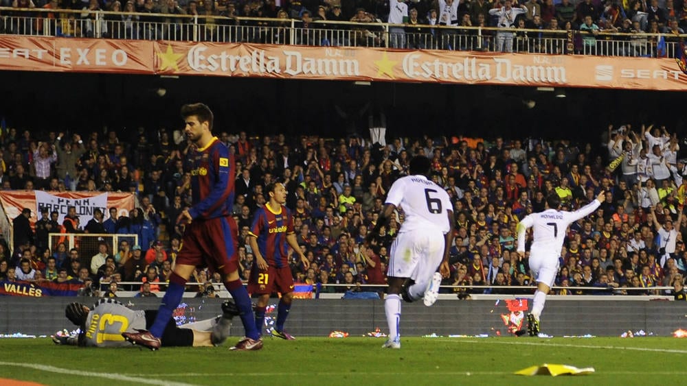 El tercer cinco a cero que recuerdo fue también devuelto, no en cantidad, pero sí con creces en calidad y sobre todo en significado, y además durante la misma temporada. En aquella Copa de Ley. En sólo unos meses, al Barcelona guardiolista de las esencias, que apareció con el alma de unos jipis confiados sobre la hierba, lo arrasó un Madrid que había perdido el miedo. No fue tanto la victoria como la derrota del miedo. Ya les habían ganado antes de empezar a jugar. Se veía en las caras de Cristiano, de Ozil, de Di María.
