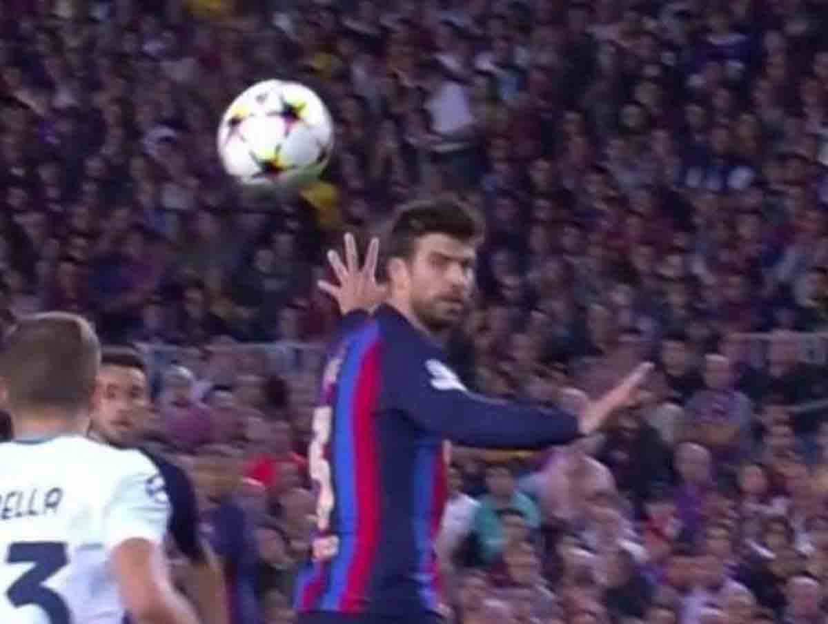 Podéis apreciar en la imagen que Piqué dice adiós a la Champions con su mano izquierda en un gesto que puede definirse como manita inversa. Todo lo que sube baja, si escupes para arriba te acaba cayendo y la ley de acción y reacción de Newton. Parece mentira que no sepas esto, Piqué, con lo listo que eres.