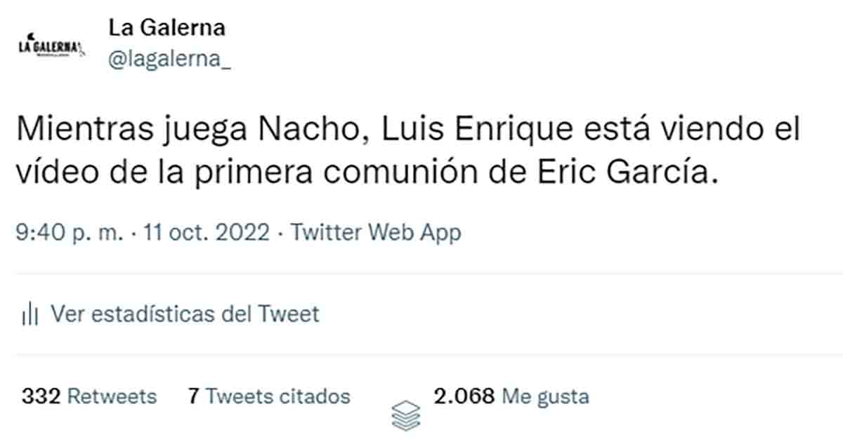 Quien no aparece en esta foto del gol, y ya es raro, es Eric García. Porque no estaba. Tal vez estuviera haciendo la primera comunión. Ya sabéis que mientras juega Nacho, a Luis Enrique le gusta ver el vídeo de este día tan entrañable en el que el central participó por primera vez del sacramento de la Eucaristía.