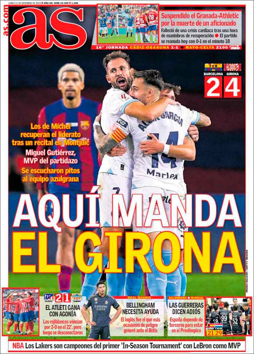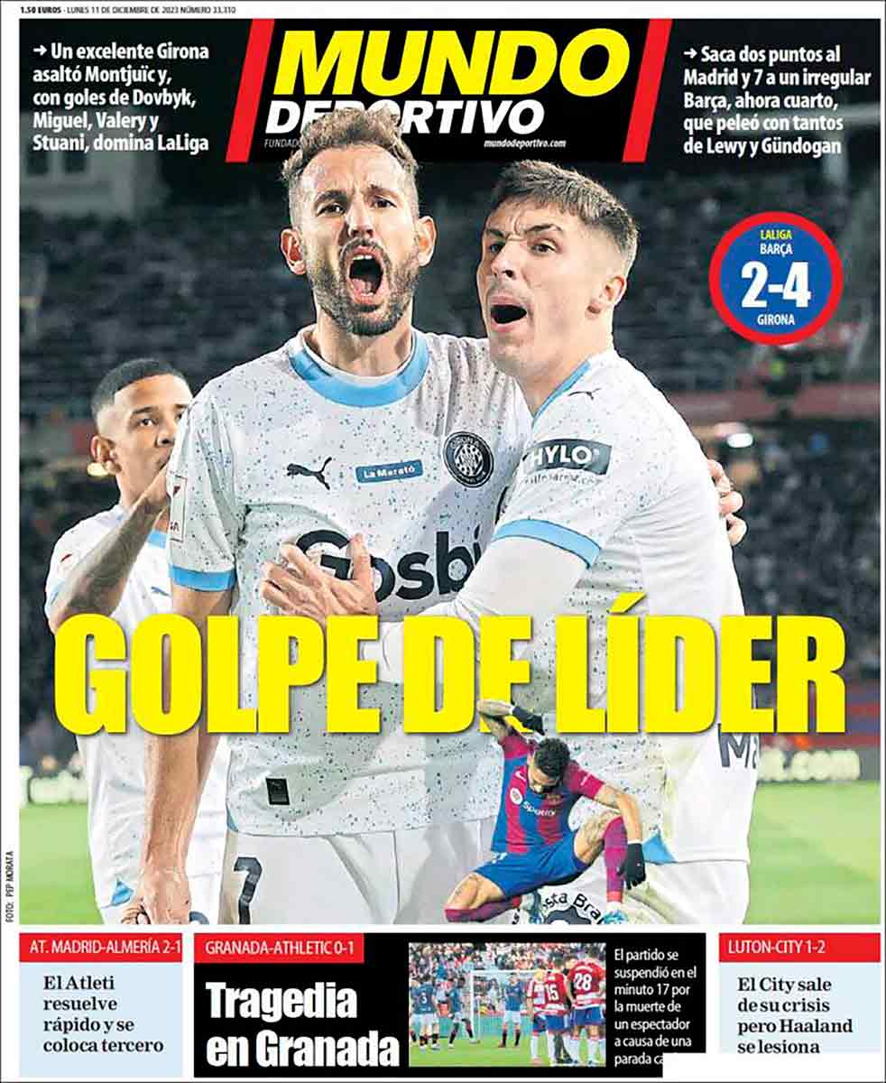 La portada más interesante de hoy, empero, es la de Mundo Deportivo, que se muestra tan rendido al Girona —conocido popularmente como el City B— que nos da por pensar que el rotativo de Godó, grande de España, podría estar cambiándose de equipo atraído por el oro negro de los Emiratos, que es —sin quitar mérito a la gran campaña de Míchel y sus hombres— quien sustenta las grandes perspectivas futuras del cuadro gerundés.