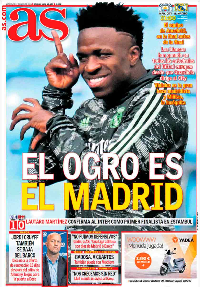 “Misión posible”, dice Marca, y trae a portada una prueba gráfica irrefutable, a saber, Vinicius Jr., a saber, el delantero más imparable del planeta a día de hoy, o sea, a día de ya porque ya establecimos antes que ya es hoy.