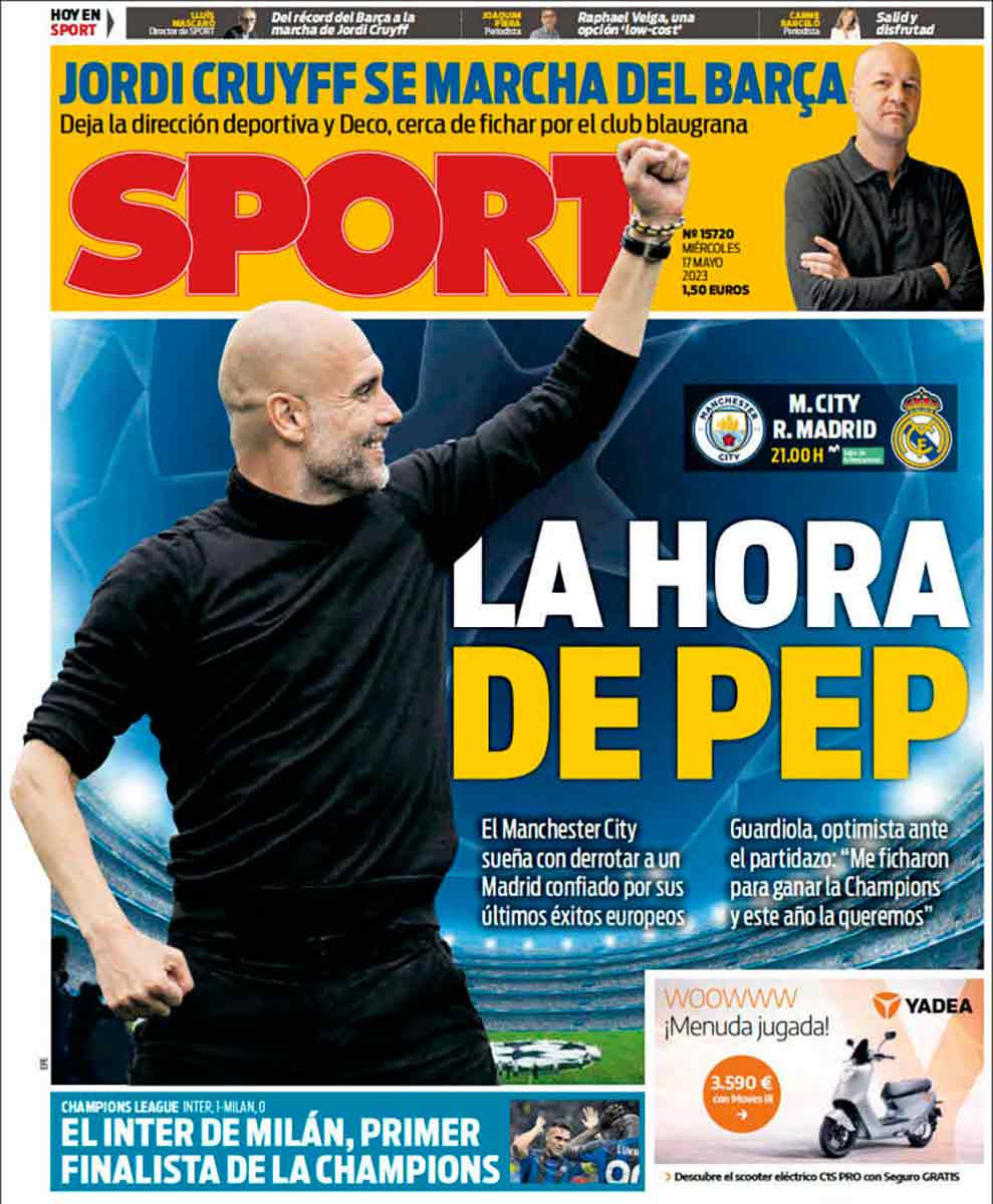 Sport, en cambio, sí se hace cargo de que, como decíamos al principio, ya es hoy. Bien es verdad que se hace cargo desde la perspectiva contraria, es decir, la guardiolesca. Sport no oculta con quién va y nos parece bien. Va con quien va el antimadridismo sarraceno, es decir, con quien sea a quien se le pueda poner una vela confiando (?) en que el Madrid no vuelva a hacerlo.