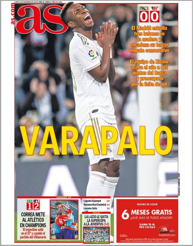Por hacer hincapié en la portada del Asco, me parece que la elección de Vinicius para la misma no es ni mucho menos inocente. En un día en el que falta puntería en general, elegir al niño para la portada, no deja de abundar en su falta de puntería con el objetivo de marcar al jugador de cara a la afición.