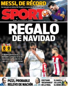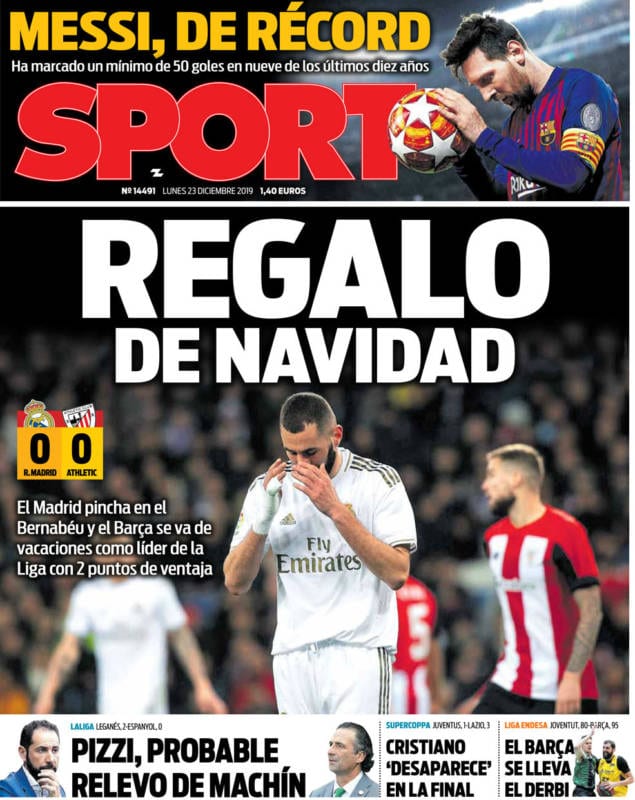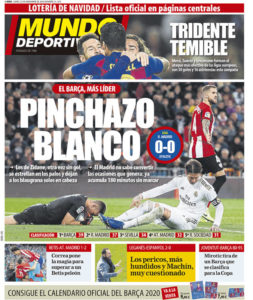 La verdad es que la prensa cataculé lleva días equivocando las portadas. Porque la portada "Regalo" era más adecuada para el jueves post-clásico o más bien aquellas del domingo (VARgonzoso o "El clásico robo") que pensamos equivocadamente que eran crónicas del partido ante la Real cuando eran peticiones para el clásico.