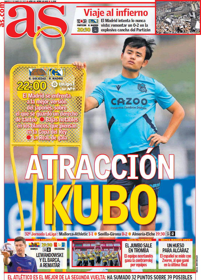 No puede existir un mayor contraste entre la relevancia y tensión del choque que hoy espera a nuestro equipo de baloncesto y aquel que ocupará al de fútbol. No puede haber partido más inoportuno y fastidioso que este de hoy en Donosti, por mucho que As se esfuerce en mostrarnos el aliciente de ver en acción a Kubo, el fenómeno nipón que el Madrid vendió a la Real pero sobre el que se reserva un derecho de tanteo que (la verdad) no tiene pinta que el club vaya a ejercer nunca. Llega este compromiso pocos días antes de la gran cita ante el City (valga la redundancia) y menos días todavía antes de