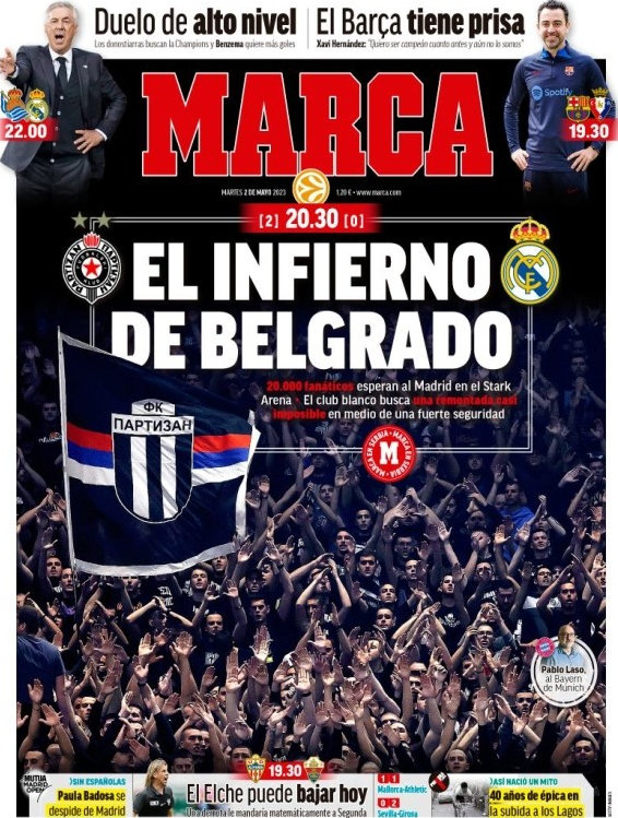 Buenos días. El Real Madrid de baloncesto juega hoy en Belgrado un partido del máximo voltaje tras los incidentes registrados en el último partido del play-off contra el Partizan. La situación es tan temible que la tensión deportiva (sí se pierde, se habrá dicho definitivamente adiós a la Euroliga) es casi lo de menos en relación a la otra tensión, si se nos entiende. Representantes del Partizan (incluido el viejo y querido Obradovic) han garantizado la seguridad personal de los jugadores y les creemos, pero esta tarde saltarán chispas en el feudo balcánico.