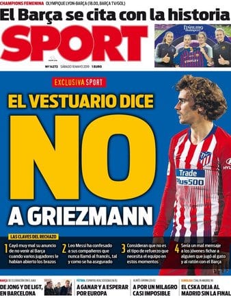 En cuanto a su portada, 'Sport' prefiere hablar de Griezmann, al que parecen no aceptar en el vestuario del Barcelona. El punto 4 es extraordinario: "Sería un mal mensaje a los jóvenes fichar a alguien que jugó al gato y al ratón con el Barça", dice el diario cataculé. Seguramente el mensaje que debería preocupar a los jóvenes sea el del derroche inagotable por los Coutinho, Dembélé, Arthur y compañía. Lo malo es que eso no vende en una portada. Nos conformamos con lo que hay.