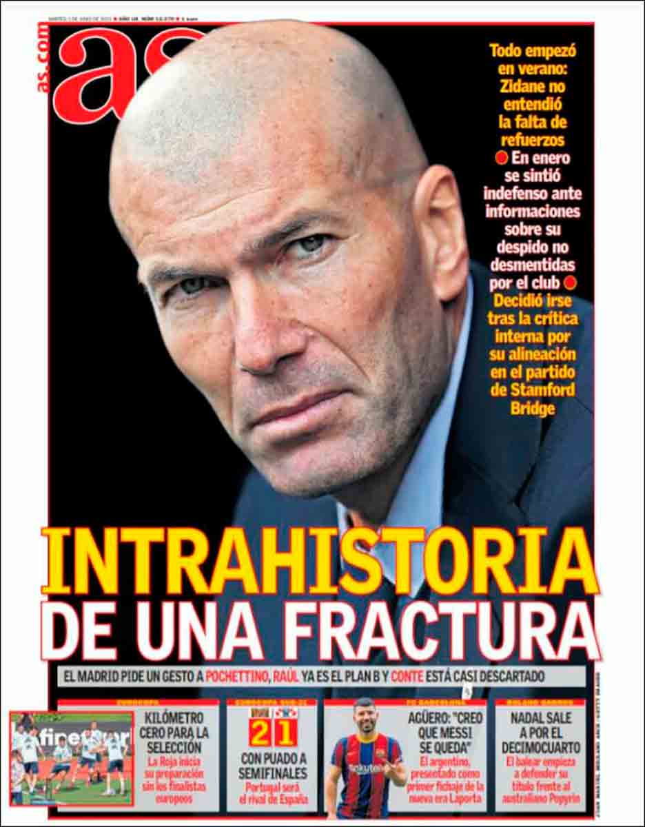 Como última reflexión, no parece muy maduro que las portadas de As y Marca de hoy sirvan como medio para que Zidane y el club se envíen reproches. Seguro que frente a frente (como cantaba Jeanette) es más sencillo, más honesto, más limpio, más estético.