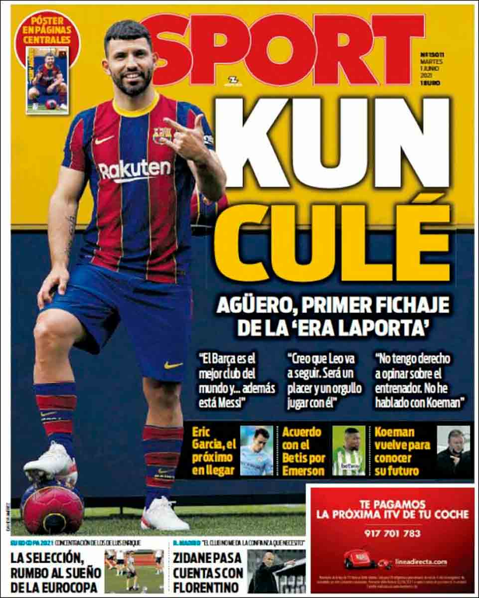 El juego de palabras de Sport hace que se nos vayan los pies y comencemos a bailar una danza masái: «Kun culé, Kun culé, Kun culé». Per ojo, que lo mejor es que Sport ofrece a sus compradores un poster con la imagen especular de la portada de Mundo Deportivo. Lo que nos faltaba por ver, metaportadismo culé.